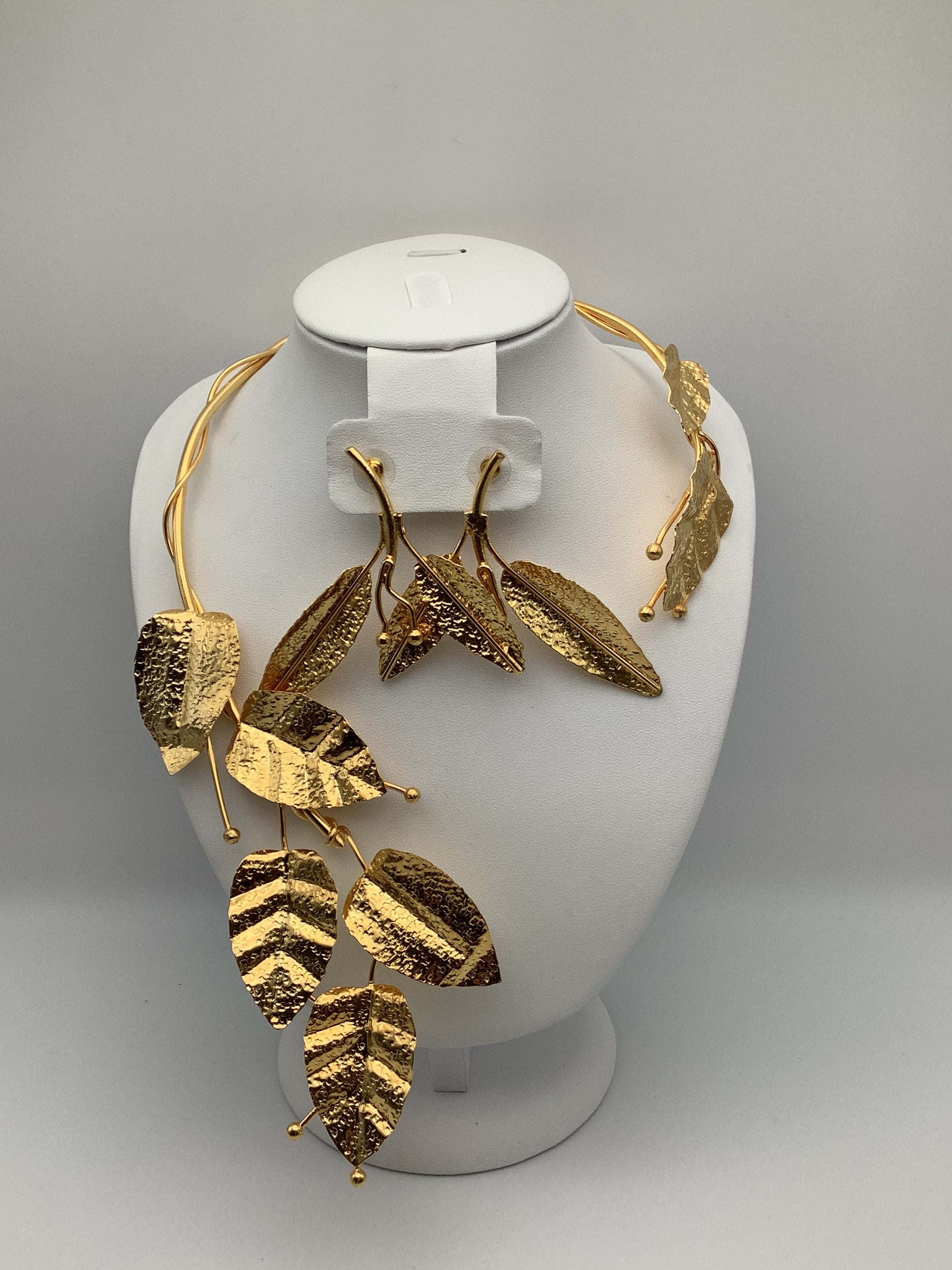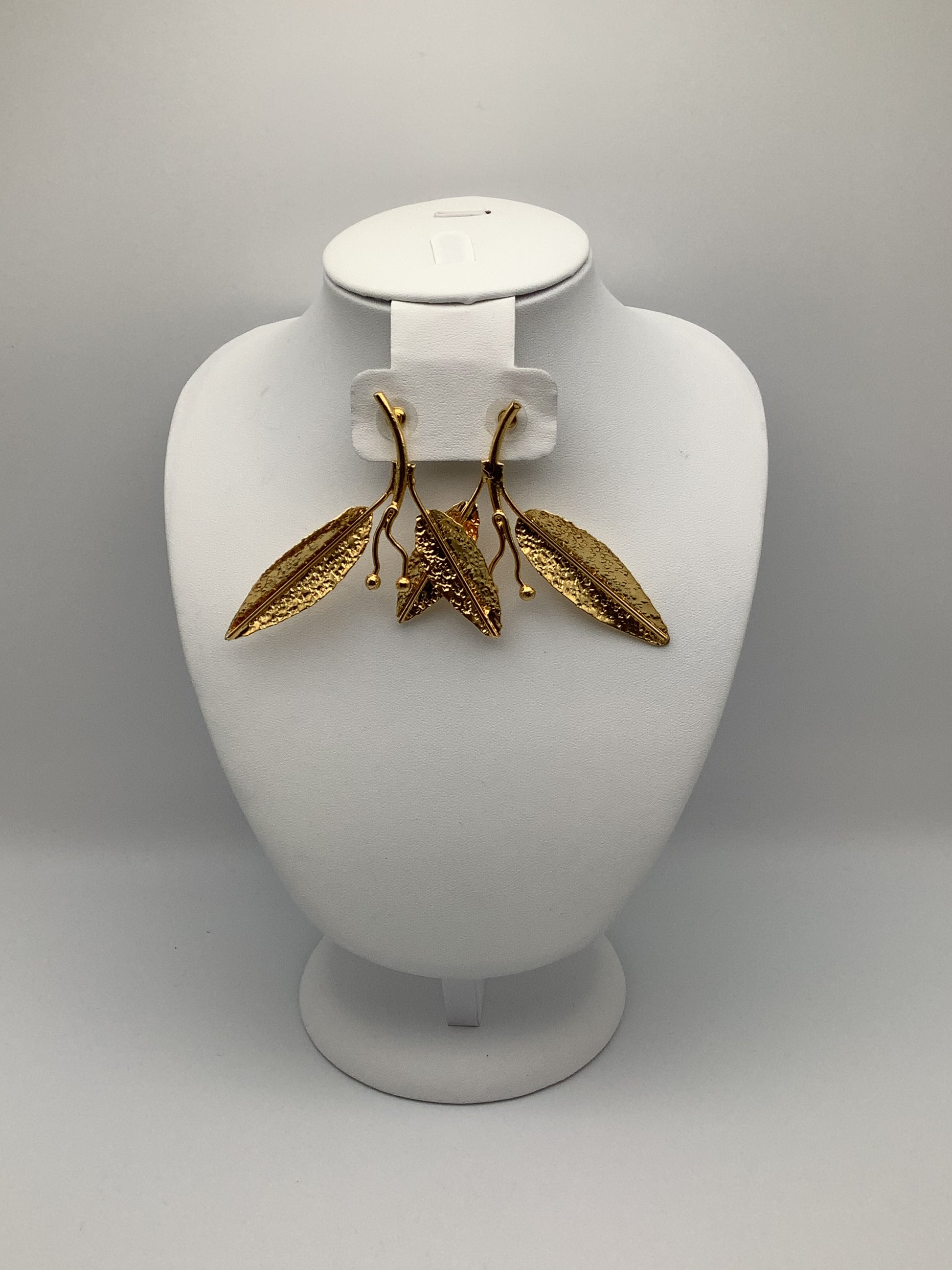 Esta pieza es elaborada 100% a mano y tiene un baño de 24k está en forma de varillas hojas