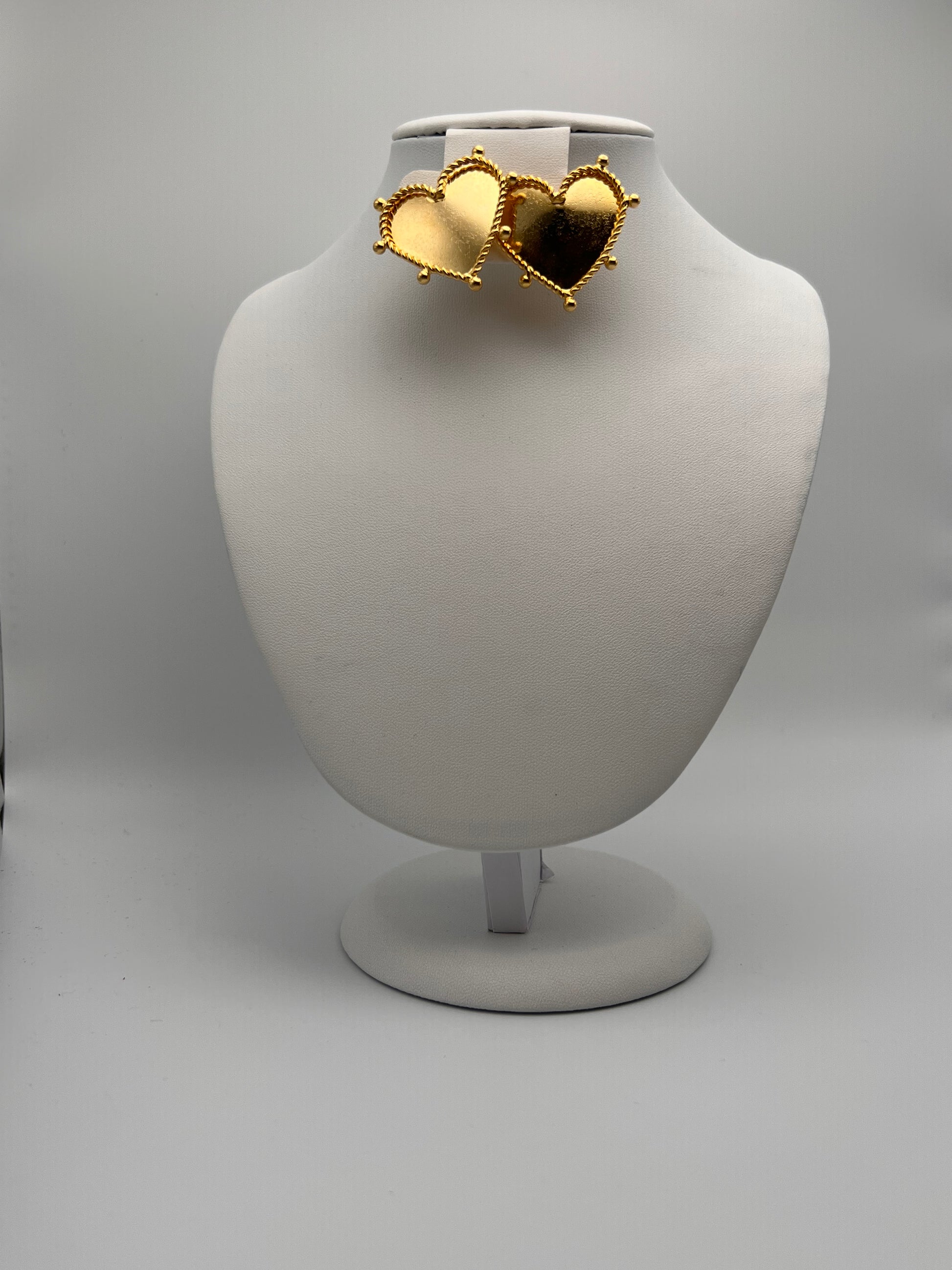 Esta pieza es elaborada 100% a mano y tiene un baño de 24k está en forma de un corazón con puntos alrededor
