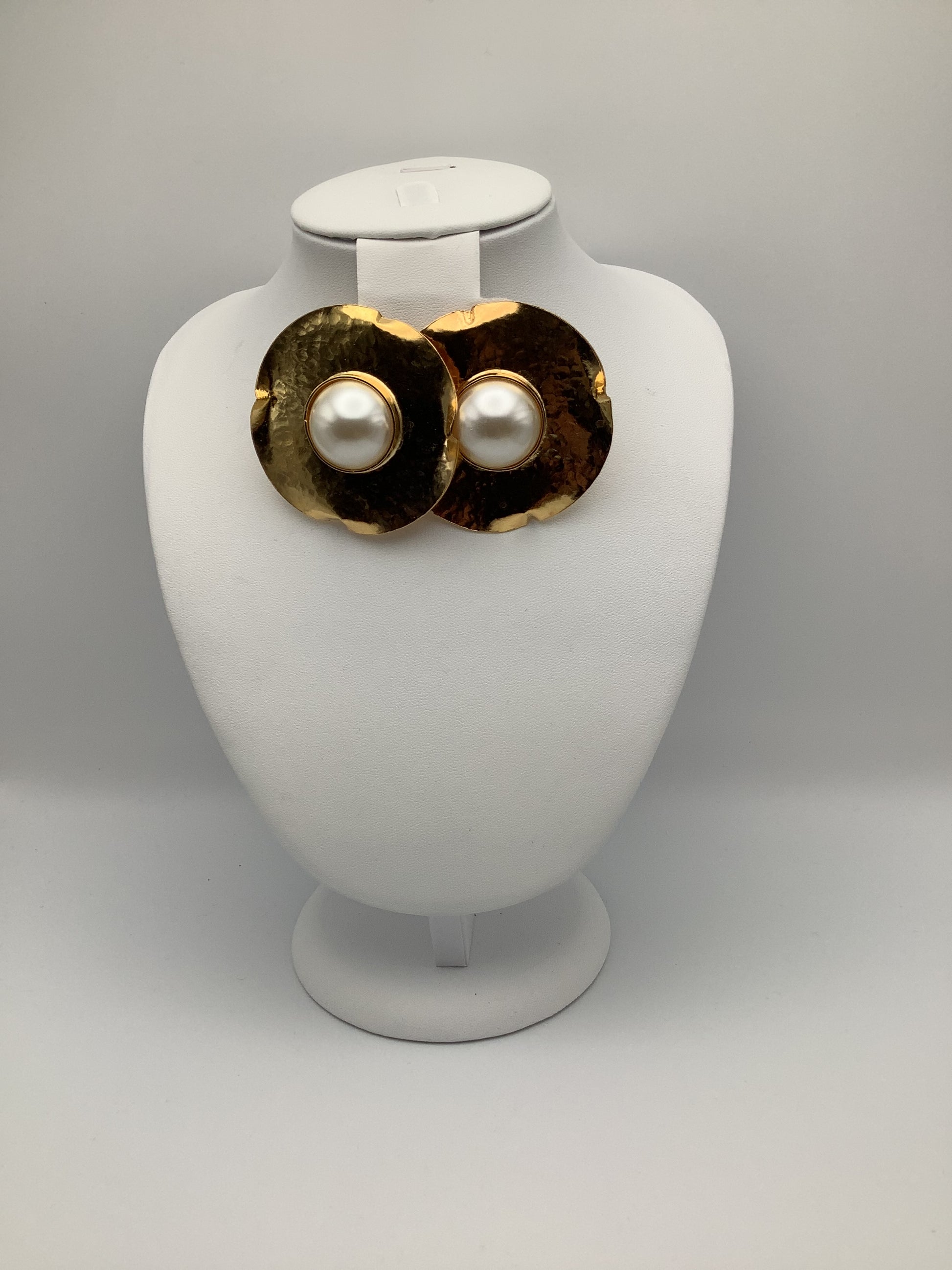 Esta pieza es elaborada 100% a mano y tiene un baño de 24k está en forma de un círculo y tiene una perla en medio