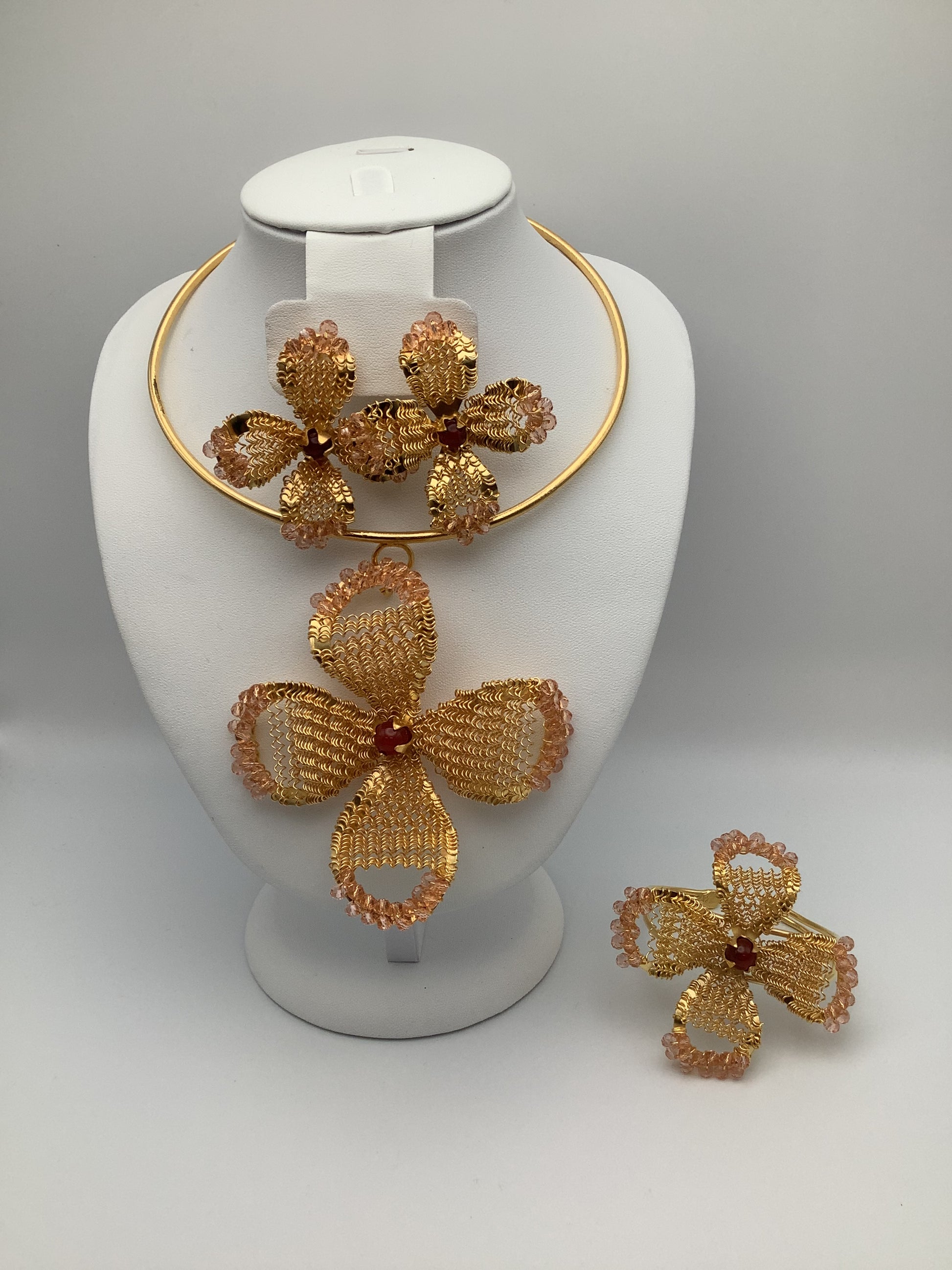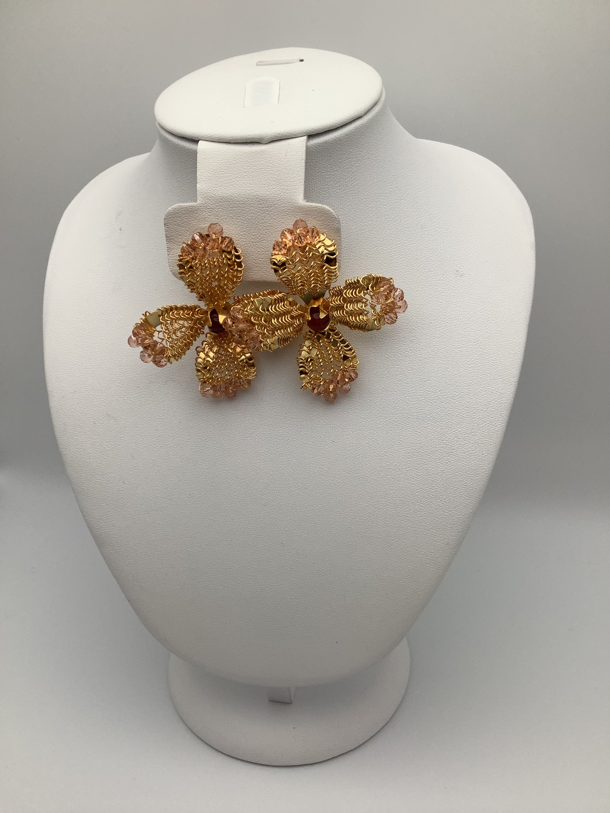 Esta pieza es elaborada 100% a mano y tiene un baño de 24k está en forma de una flor de verano