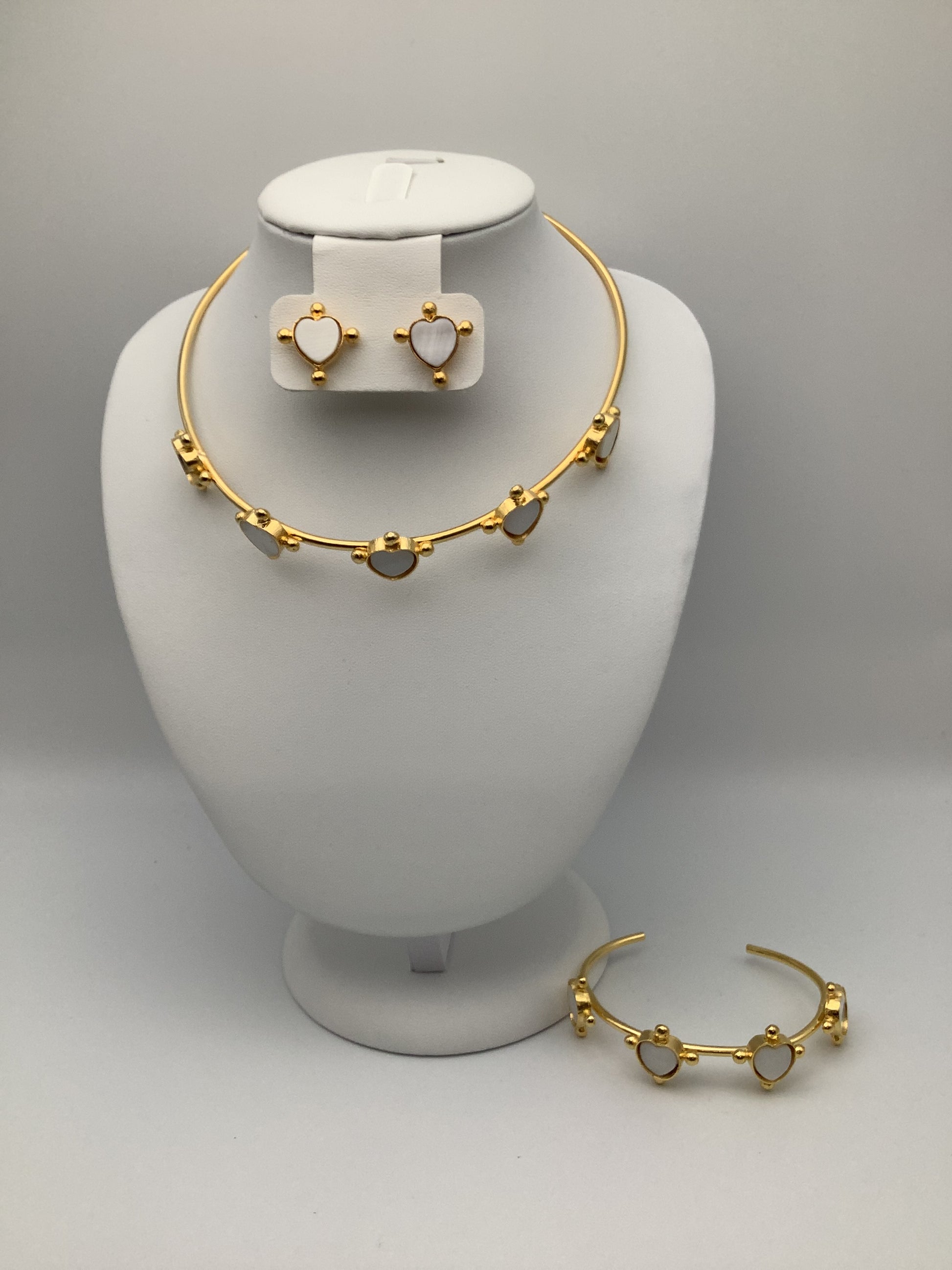 Esta pieza es elaborada 100% a mano y tiene un baño de 24k tiene un cristal blanco en forma de corazón