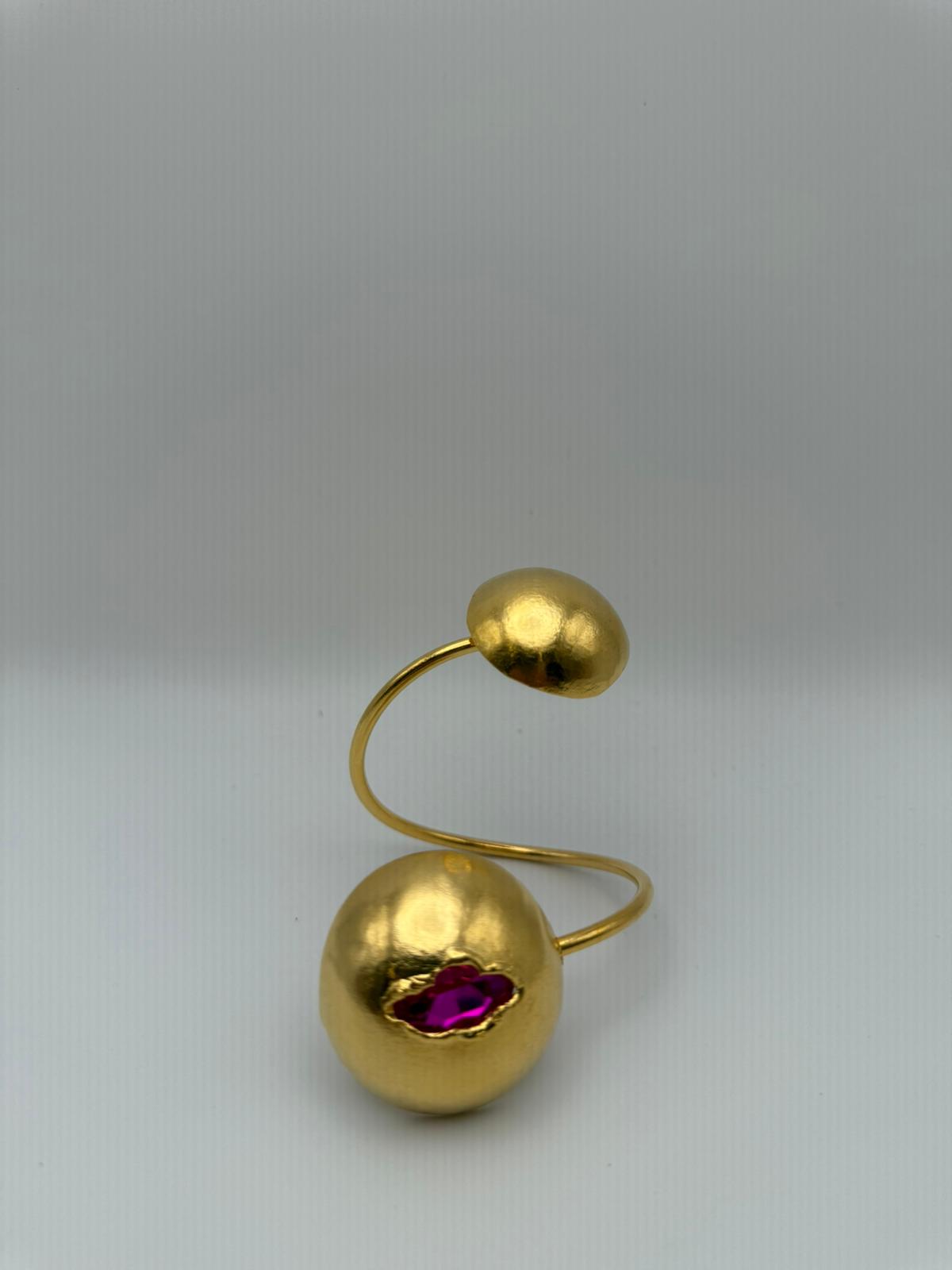 Esta pieza es elaborada 100% a mano y tiene un baño de 24k con un cristal fushia