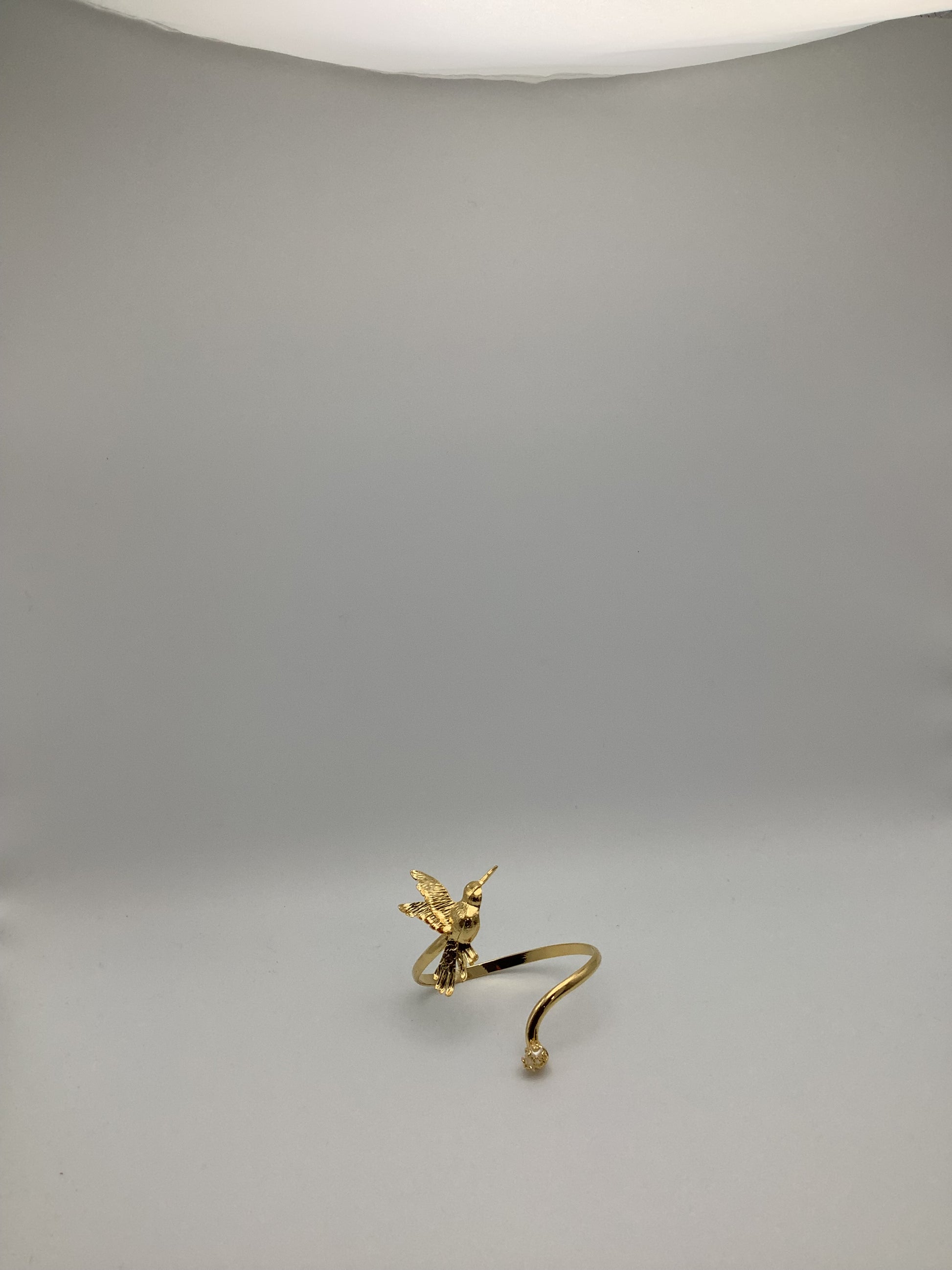 Esta pieza es elaborada 100% a mano y tiene un baño de 24k esta en forma de un colibrís