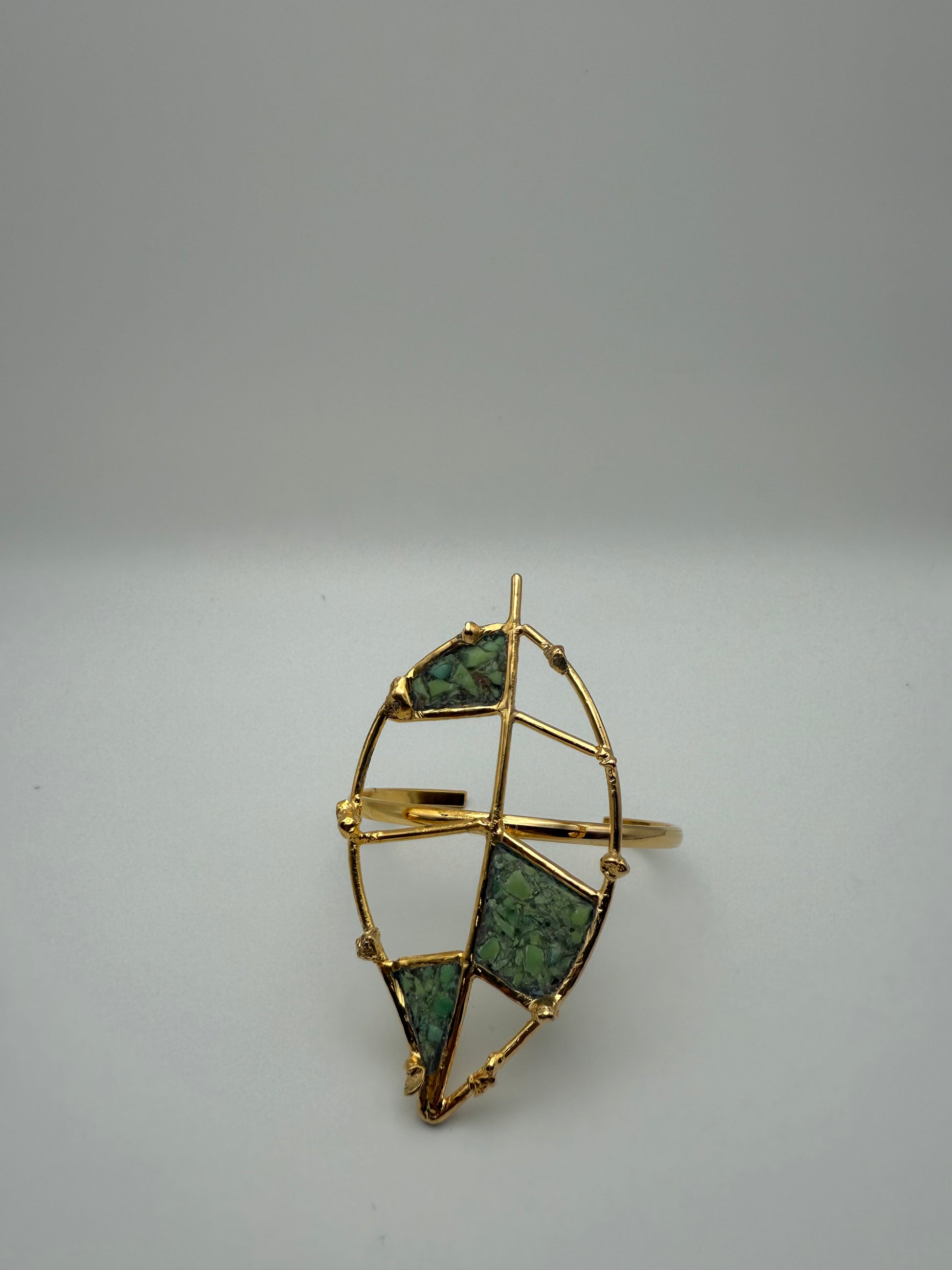 Esta pieza es elaborada 100% a mano y tiene un baño de 24k está en forma de una hoja