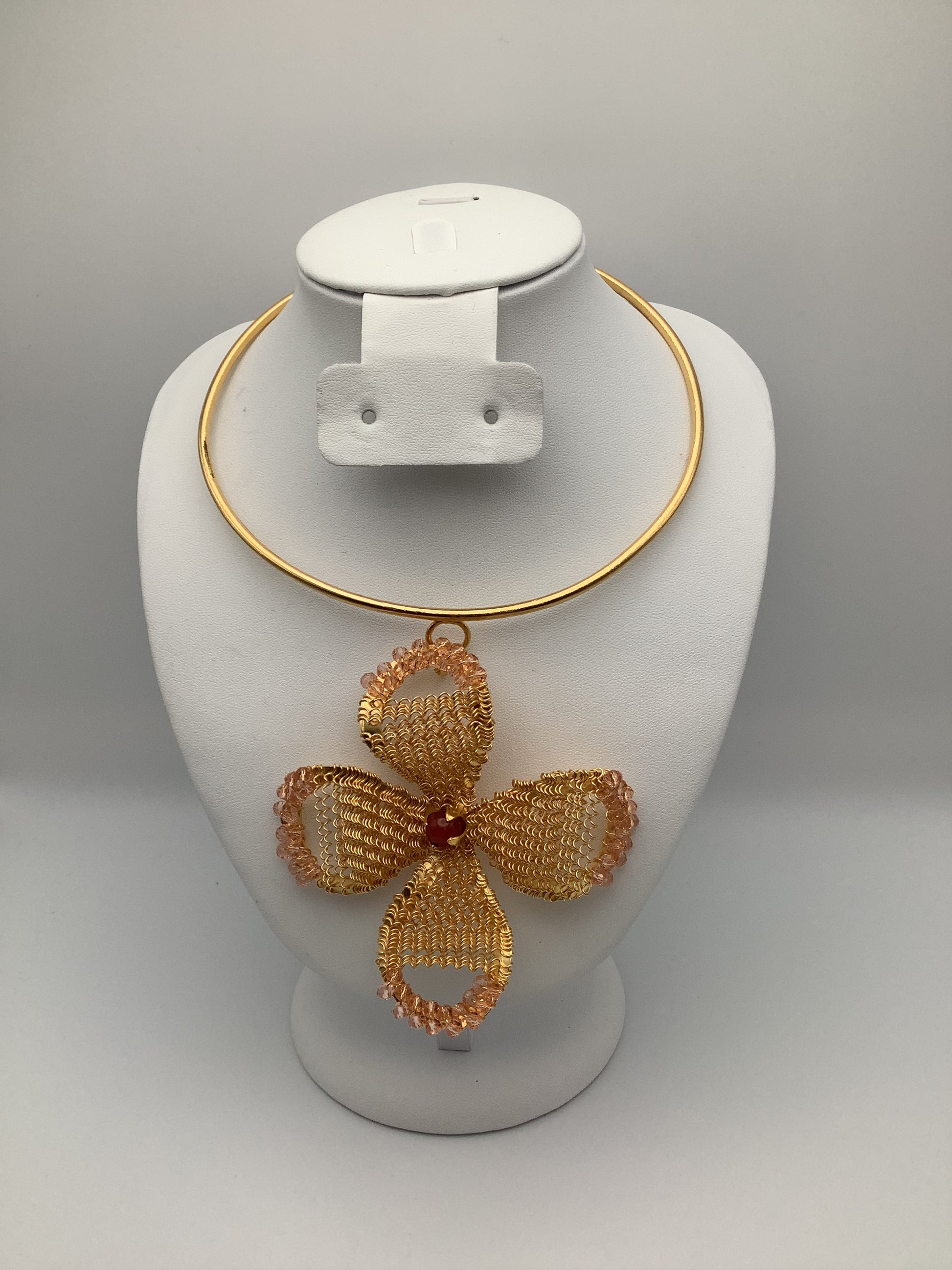 Esta pieza es elaborada 100% a mano y tiene un baño de 24k está en forma de una flor de verano