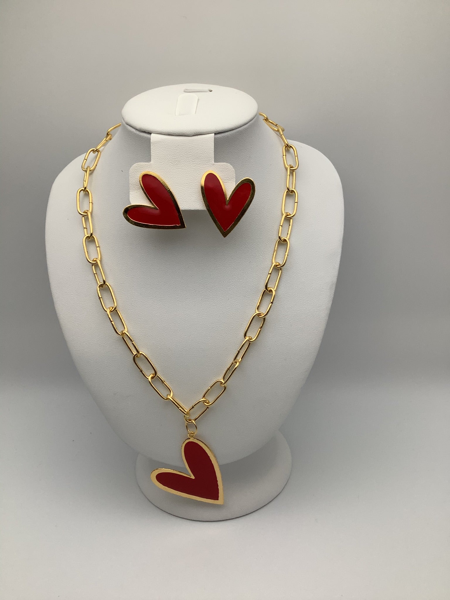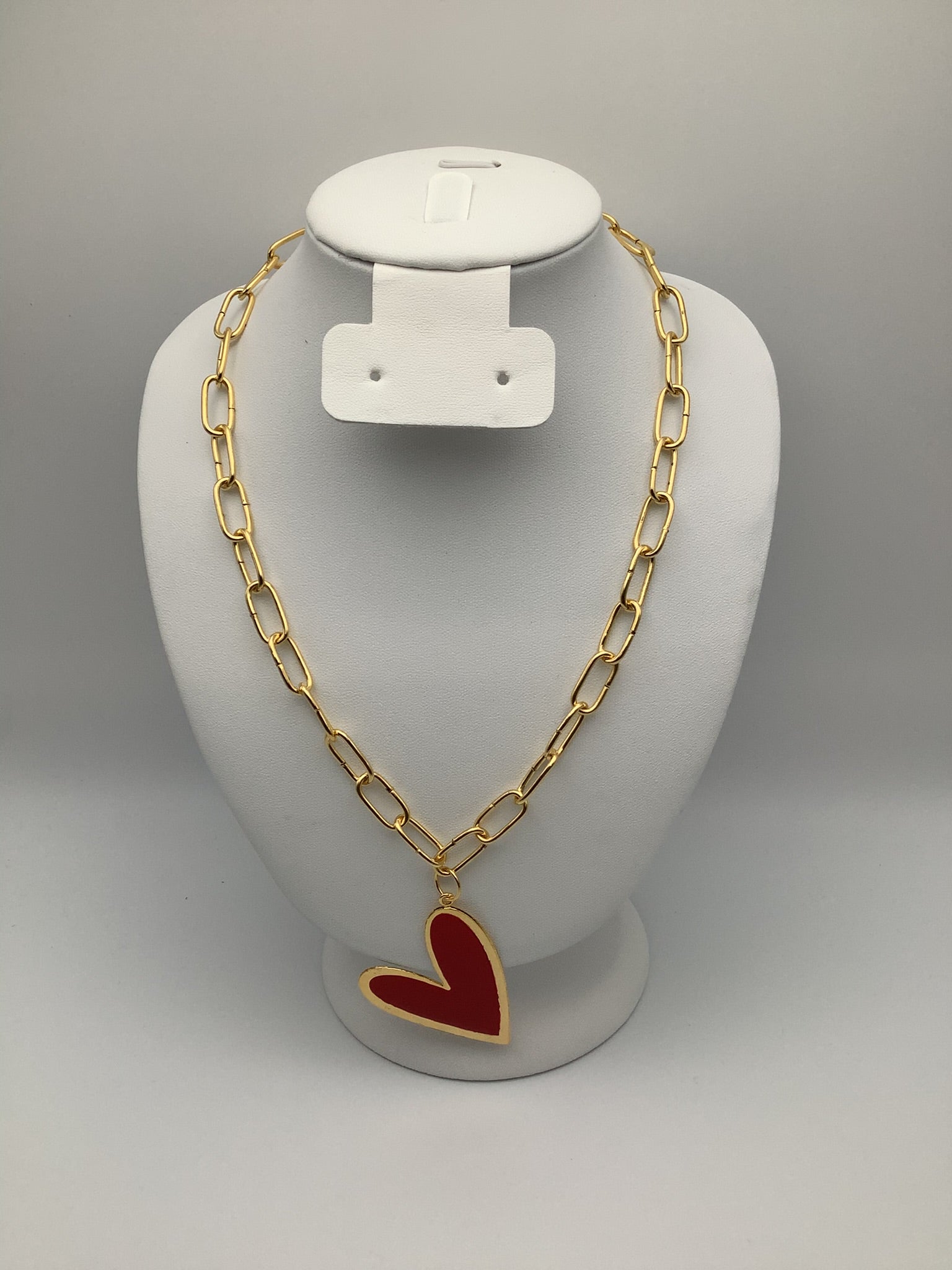 Esta pieza es elaborada 100% a mano y tiene un baño de 24k está en forma de un corazón relleno con rojo