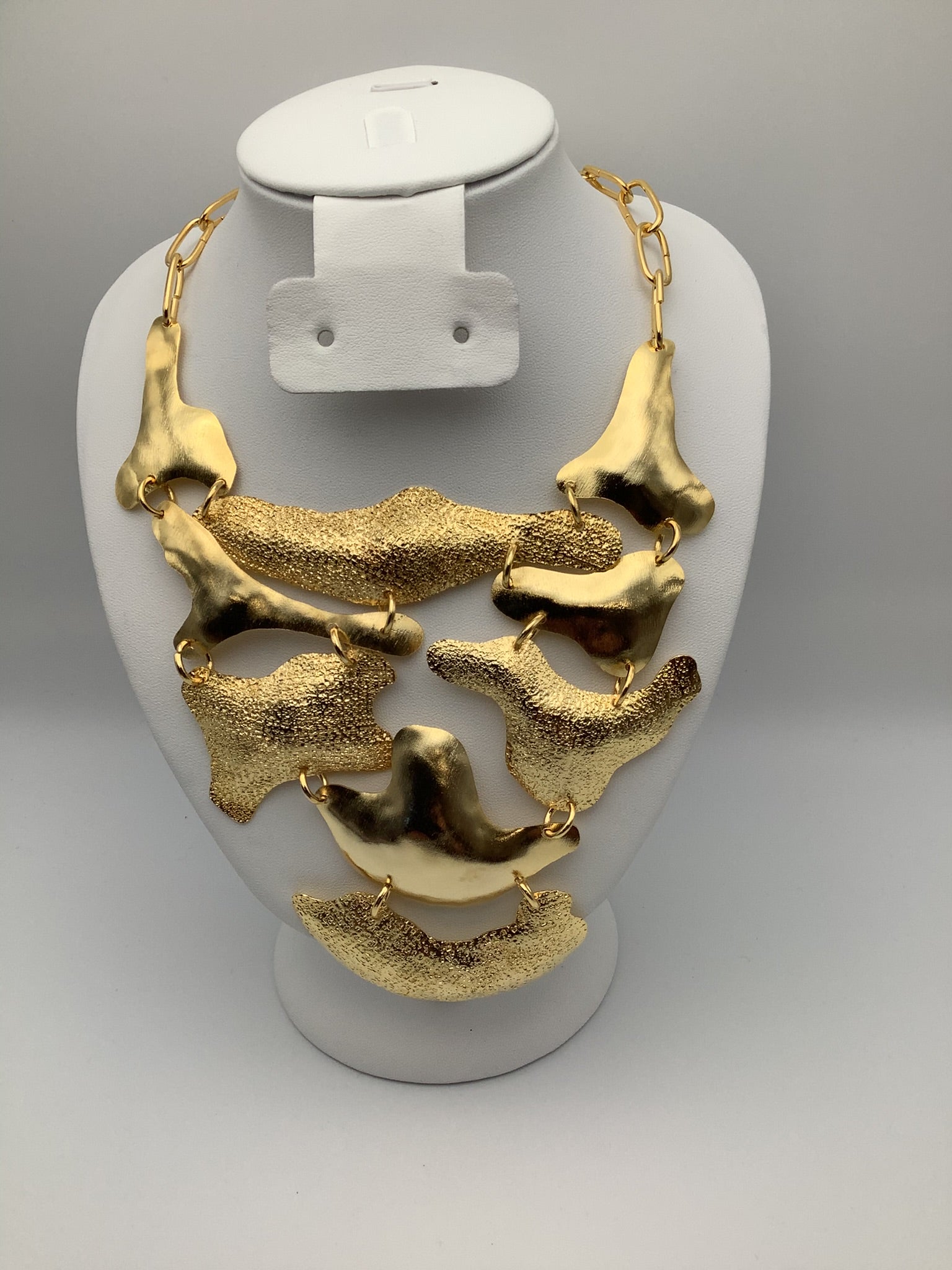 Esta pieza es elaborada 100% a mano y tiene un baño de 24k está en una forma abstracta