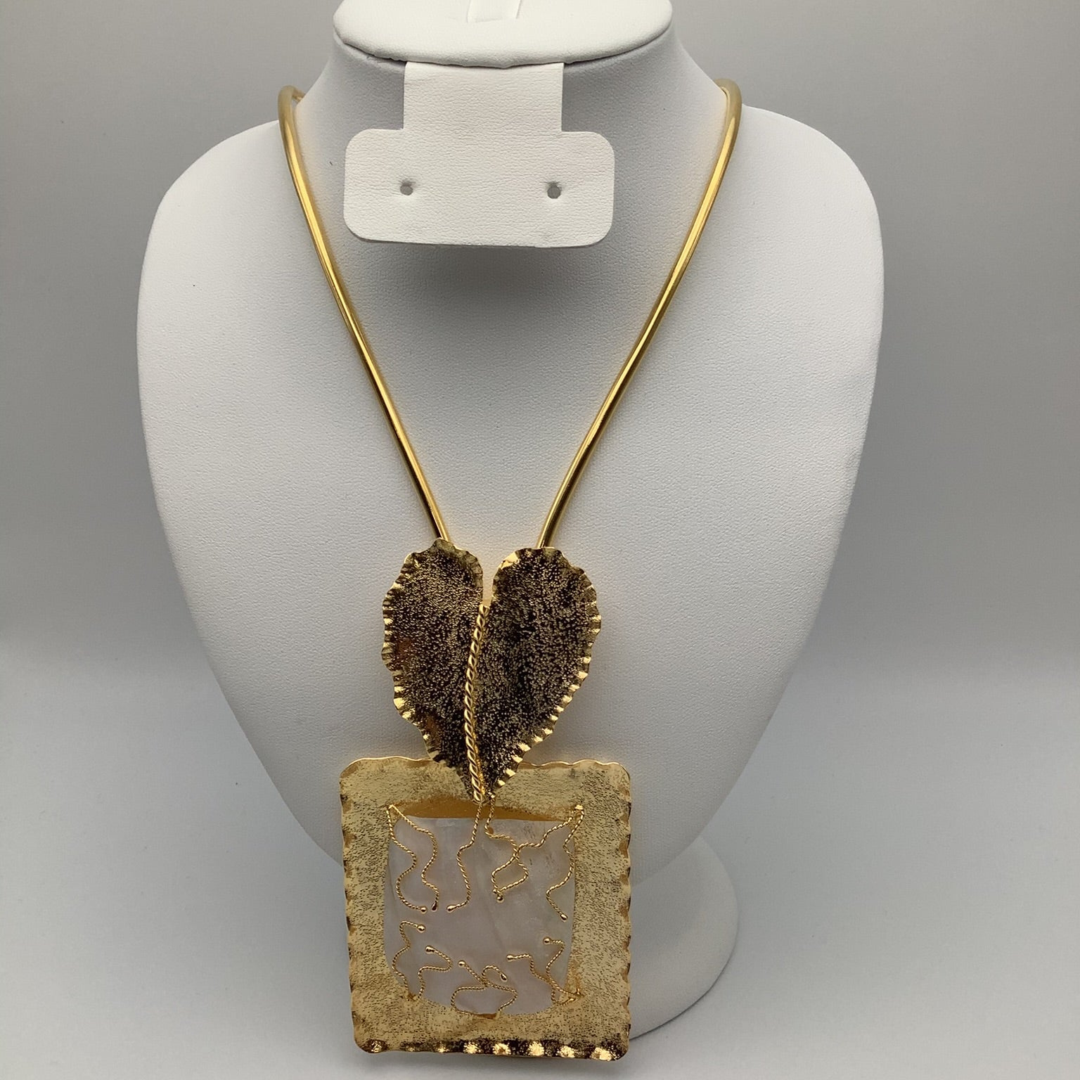 Esta pieza es elaborada 100% a mano y tiene un baño de 24k está en forma de un rectangular y tiene una gema blanca con detalles oros
